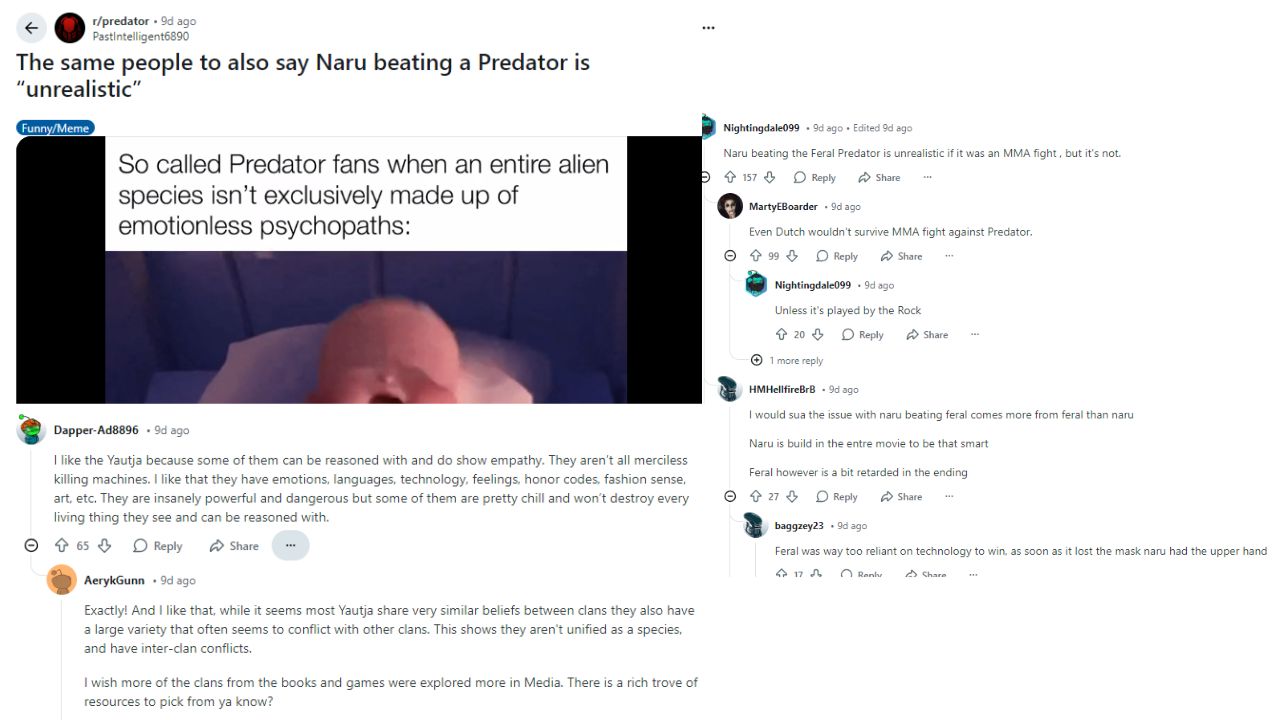 Importantly, Prey leveraged the fight to comment on technological dependence. Discussions among fans on sites such as Reddit continually remarked that the Feral Predator was made vulnerable because of its dependence too much on advanced technology.